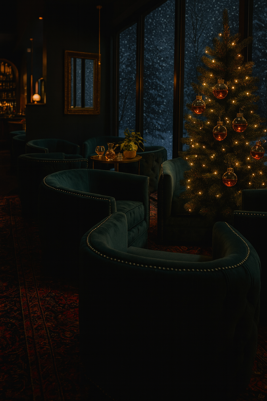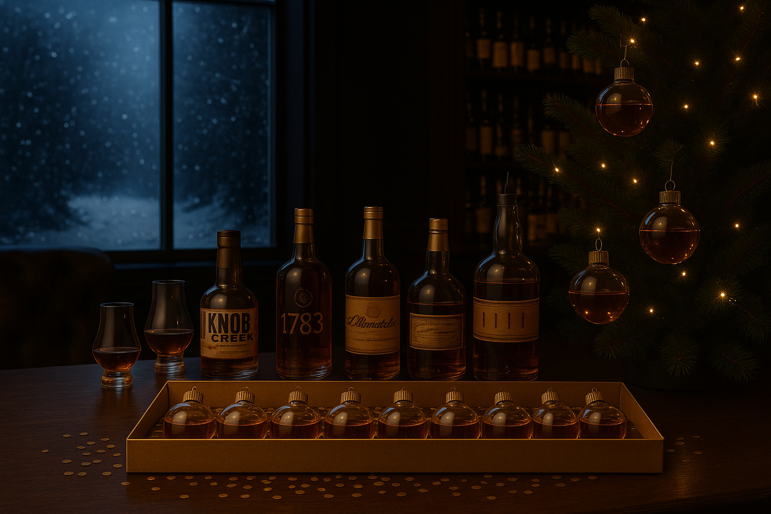 9 ornaments filled with 2oz of 80 East hand-picked barrel bottle pours